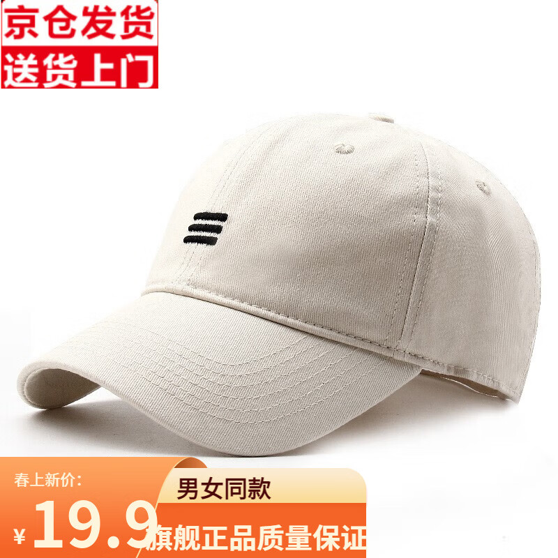 鑫铎棒球帽子男士潮流嘻哈夏季长檐简约鸭舌帽女休闲四季防晒遮阳帽男 三条杠米色 均码 55-60CM