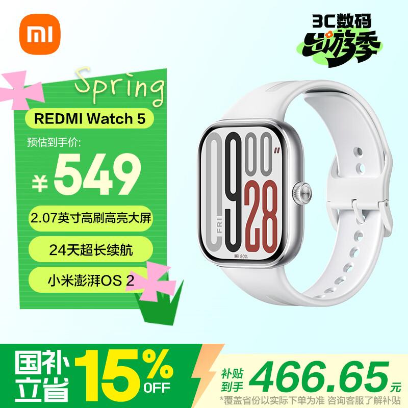 小米(MI)REDMI Watch 5 皎月银 澎湃OS 2 心率血氧监测 蓝牙通话 红米手表5 智能手表 小米汽车