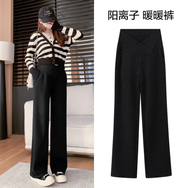 米度丽 孕妇裤冬季外穿阔腿裤加绒无托腹直筒休闲裤孕妇装冬装 深花灰L