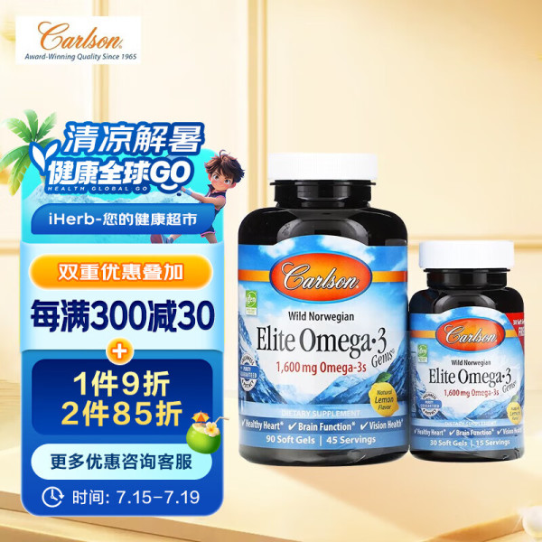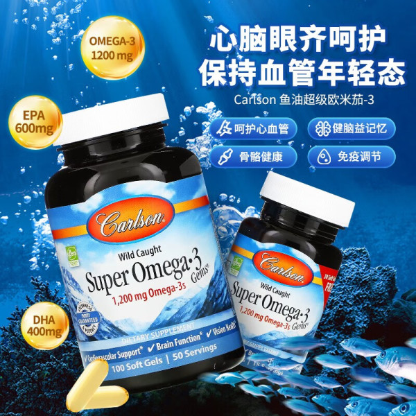CarlsonOmega-3Gems 鱼油软凝胶 视力保护关节呵护免疫提升 120单位