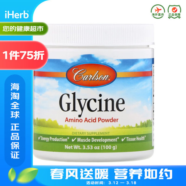 Carlson Labs卡尔森 甘氨酸氨基酸粉 100克 有助肌肉发育产生能量代谢皮肤免疫功能