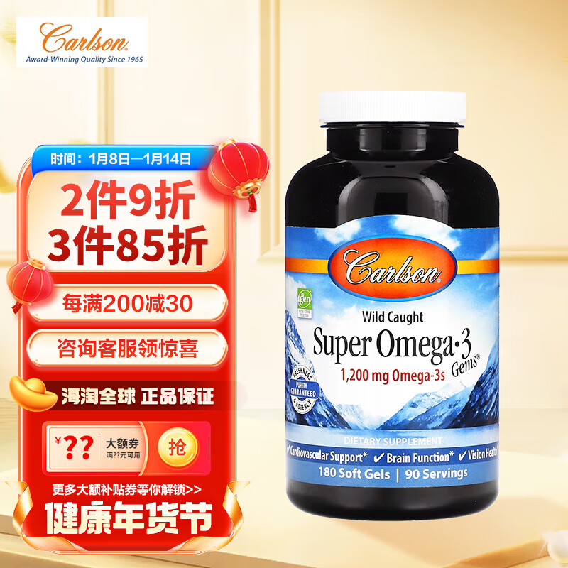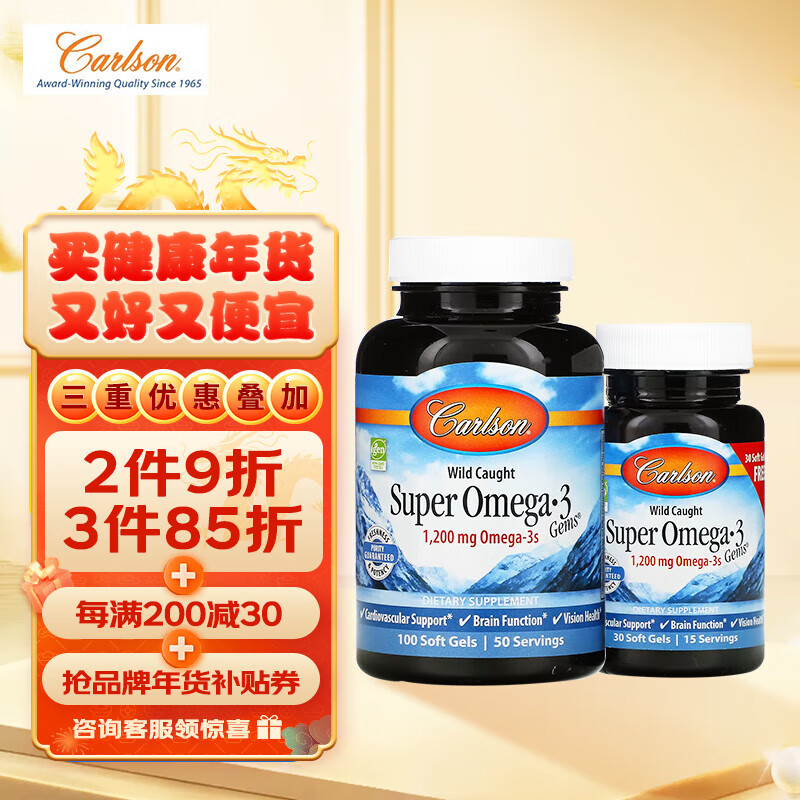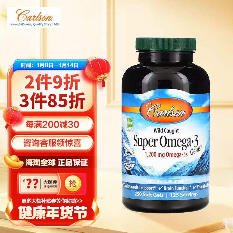 Carlson 康一生 深海野生鱼油omega3欧米伽3无腥味送30粒
