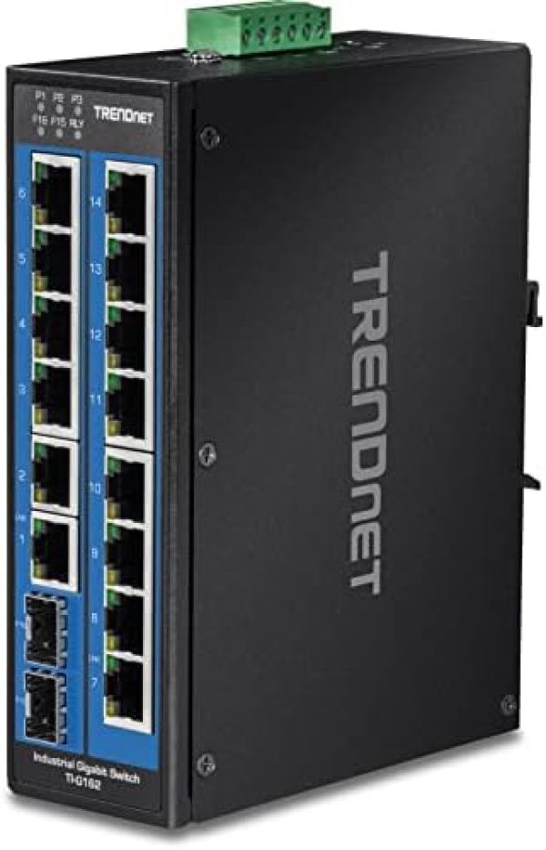 TRENDnet 16 端口硬化工业非管理型千兆 DIN 导轨交换机
