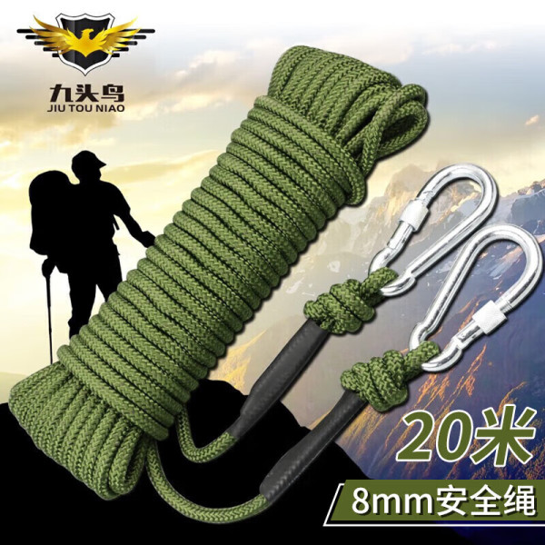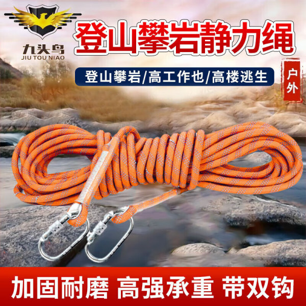 九头鸟 登山绳 安全绳 救援绳 救生绳 速降绳 逃生绳索 火灾逃生绳 户外逃生绳子60米带双钩8mm