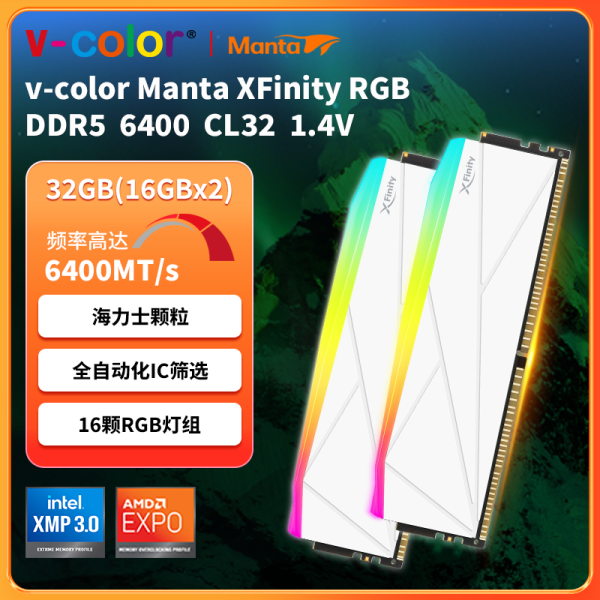 全何 V-Color XSky DDR5台式机内存条 6000 32G(16Gx2)套装 CL28 可超频