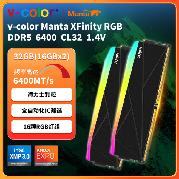全何 V-Color XSky DDR5台式机内存条 6000 32G(16Gx2) 套装CL30 可超频 带电竞RGB灯条