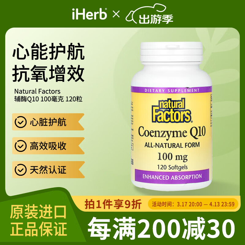 Natural Factors辅酶Q10软凝胶 心脏功能优化延缓皮肤衰老搭配鱼油增效 100mg 120粒*1瓶