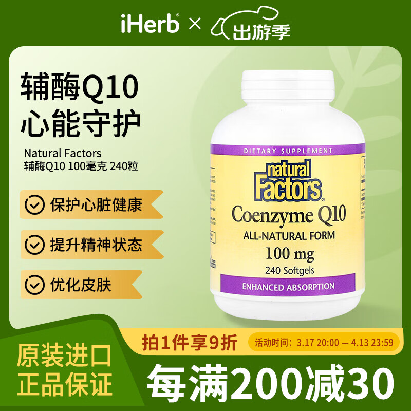 Natural Factors辅酶Q10软凝胶 心脏功能优化延缓皮肤衰老搭配鱼油增效 100mg 240粒*1瓶