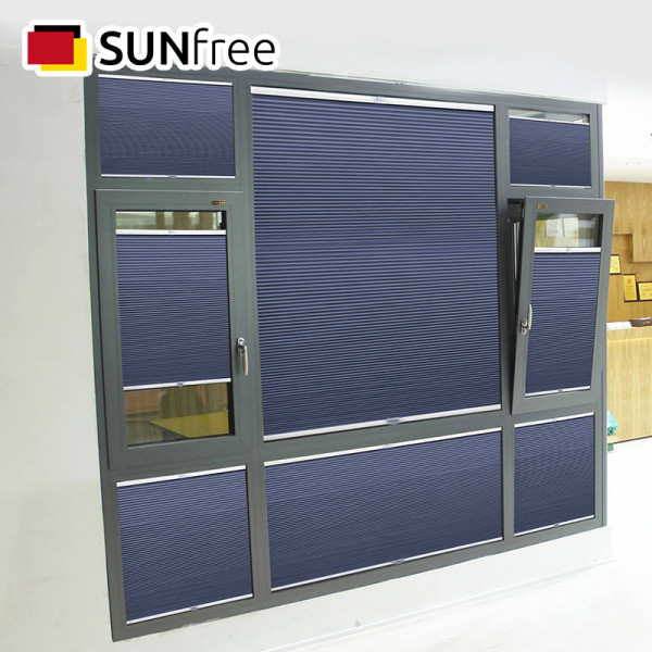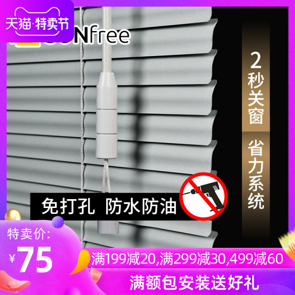 sunfree内开内倒窗蜂巢帘遮光升降卫生间百叶窗帘防水百折边锁