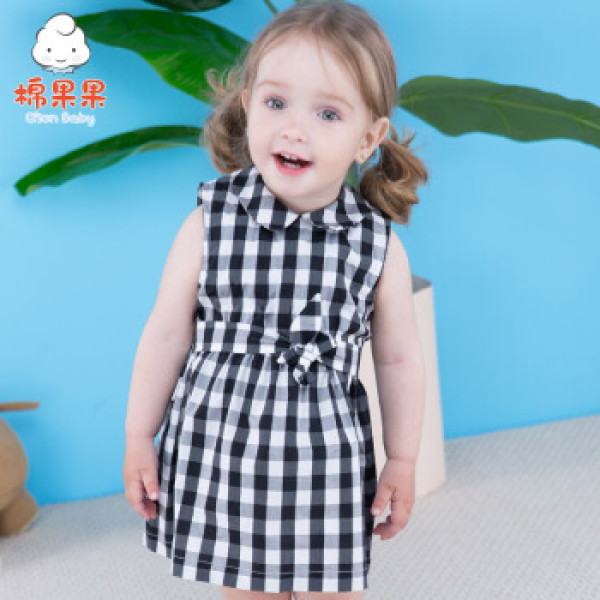 棉果果童装女童裙子女宝宝夏季无袖连衣裙 18279 白色 100