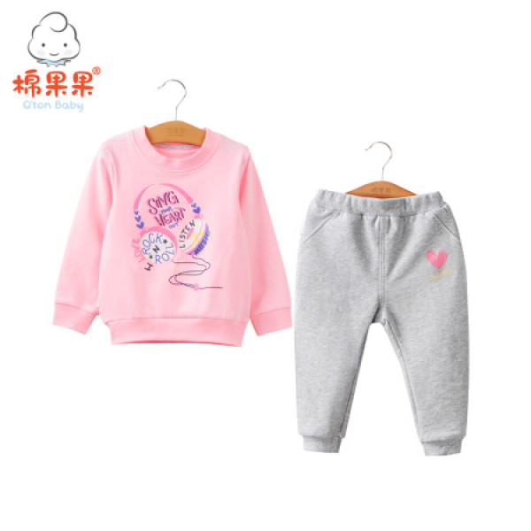 棉果果童装女童套装秋装儿童外出运动两件套 宝宝卫衣套装 18818 粉色 100码