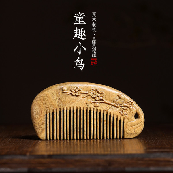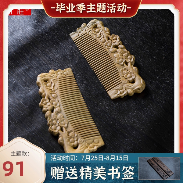周广胜 雕花绿檀木梳子天然檀香木梳送女友刻字定制随身小梳子便携