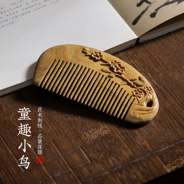 周广胜 天鹅檀木梳