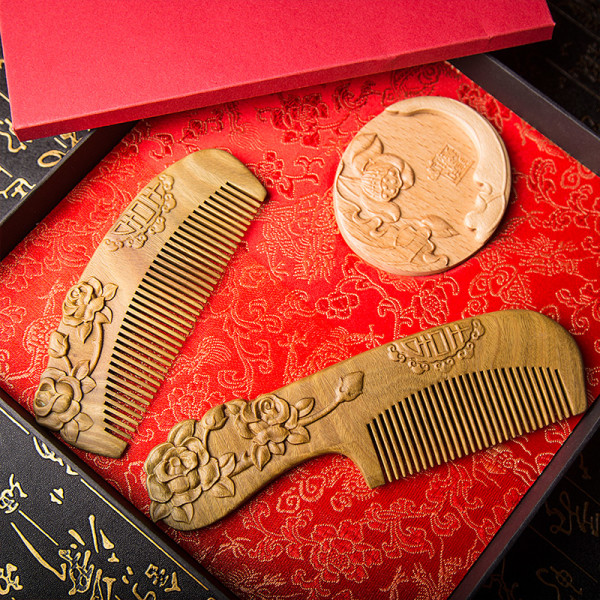 周广胜 龙凤对梳 结婚礼物 红色 礼盒装