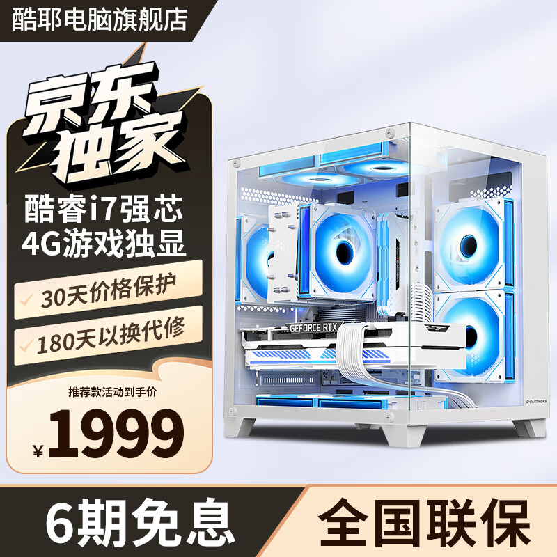 酷耶32g内存酷睿i7/1TB固态RTX3060独显游戏台式机电脑主机整机全套组装家用电竞商用办公设计新款 套餐三 酷睿i7丨8G丨96系独显4G电竞游戏
