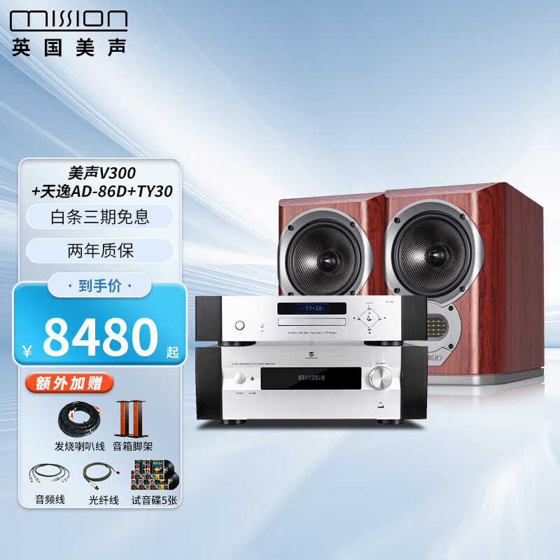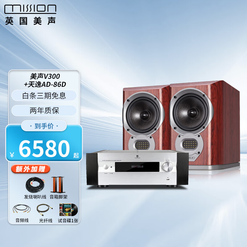 美声 mission V300 美声音箱发烧HiFi书架箱无源音箱监听音响木质