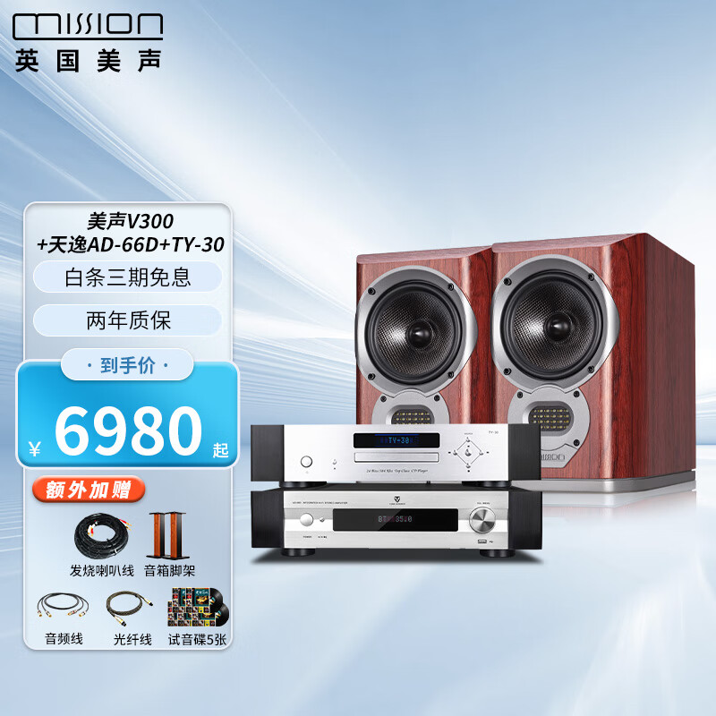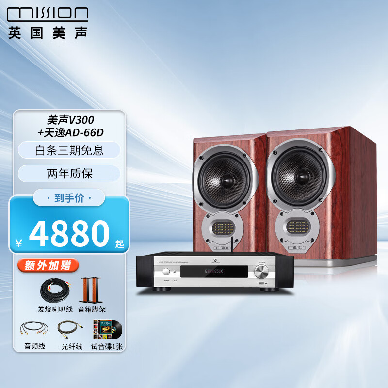 美声 V300 美声音箱HiFi音箱书架箱无源音箱家用HiFi音响无源音响木质音箱 美声V300 天逸AD-66DPRO HiFi专区