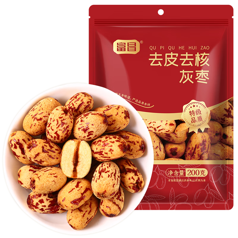 富昌特级去皮去核灰枣200g*5 无核糯枣即食干果零食煲汤煮粥 粽子配料