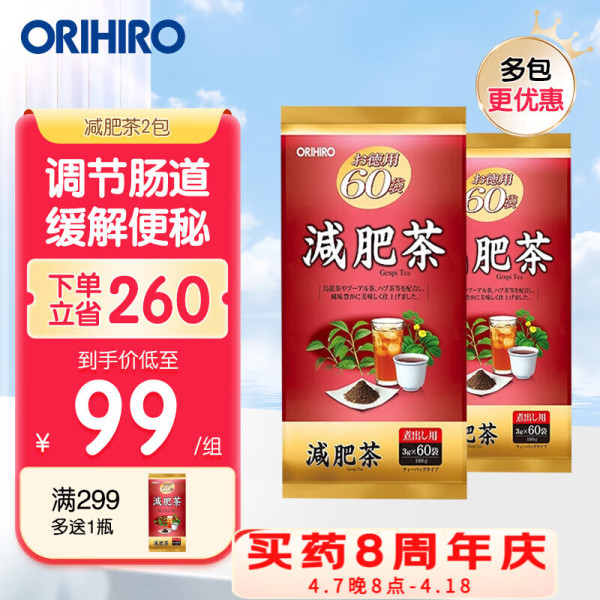 欧力喜乐(ORIHIRO)减肥茶60包 天然草本温和不伤身减肚子瘦身【效期25年3.1】 2包