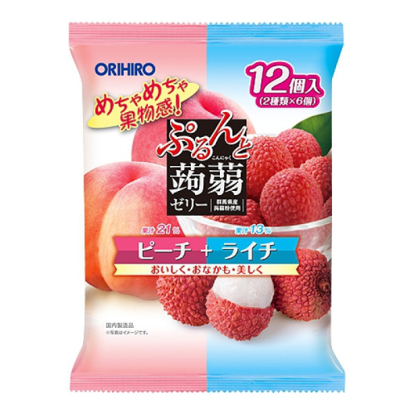 ORIHIRO ]蒟蒻果冻鼠年货立喜乐orihiro吸果汁奇亚籽纤零食日本进 水蜜桃荔枝(12枚/袋