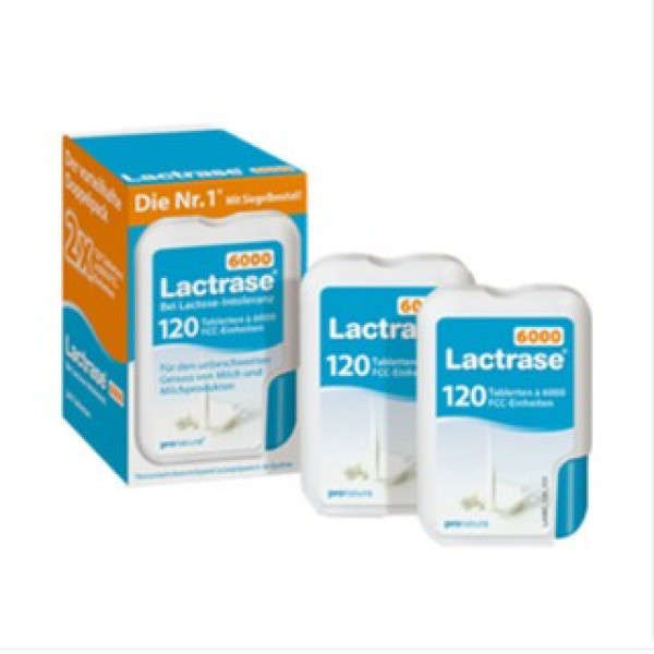 Lactrase 欧洲直邮德国乐迪士Lactrase 6000FCC乳糖酶片120粒防乳糖不耐受