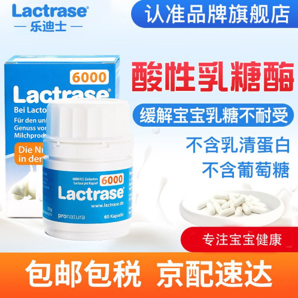 Lactrase 德国乐迪士酸性乳糖酶婴幼儿乳糖不耐受吐奶拉肚子腹泻原装进口60粒