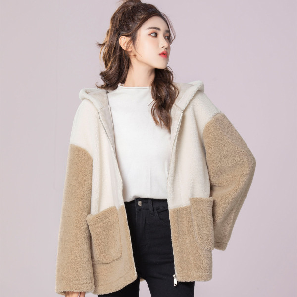 羊羔毛外套女2020新款潮秋冬季拉链连帽外套百搭上衣