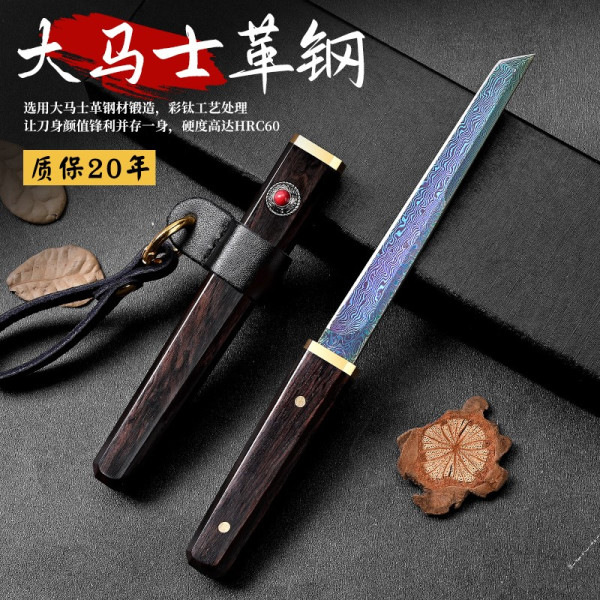 创木工房水果刀大马士革钢小刀家用削皮刀瓜果刀切肉牛排刀便携多功能刀 典藏款-彩钛大马士革小刀
