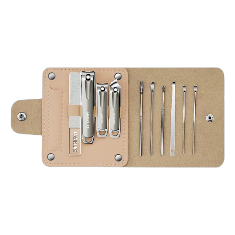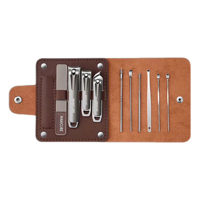 创木工房指甲刀套装指甲剪套装挖耳勺斜口指甲钳子家用带指甲锉10件套棕色