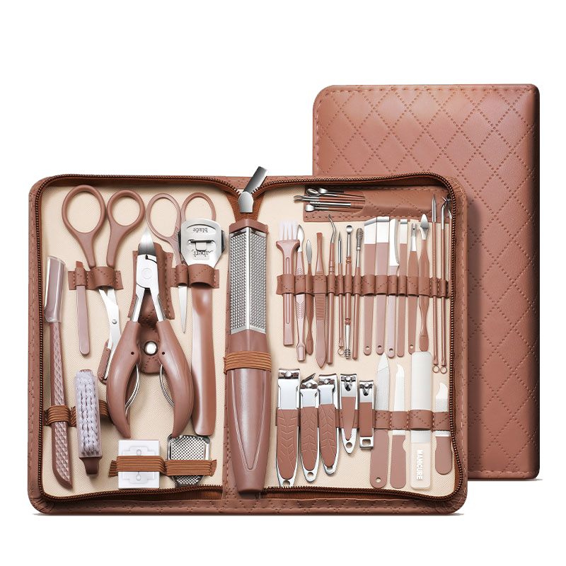 创木工房指甲刀套装甲沟专用修脚刀套装工具指甲钳鹰嘴钳去死皮棕色42件套