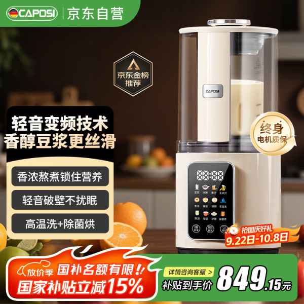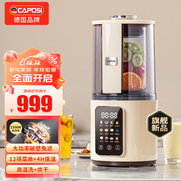 嘉泊仕 CAPOSI 德国高端彩屏破壁机家用静低音加热全自动免煮五谷杂粮多功能豆浆机免滤
