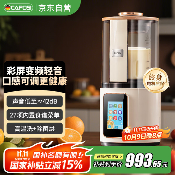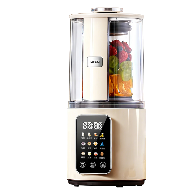 嘉泊仕 CAPOSI 德国新款彩屏静轻音破壁机家用加热全自动料理多功能辅食免手洗豆浆机免滤 奶油白
