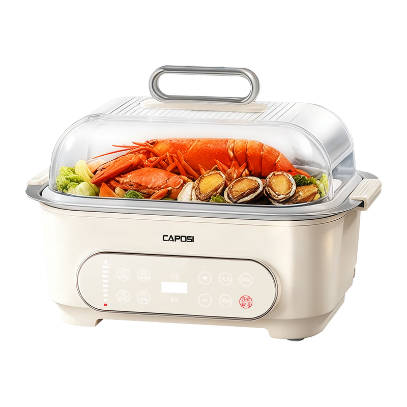 嘉泊仕(CAPOSI)德国【玻璃0塑0涂层】电蒸锅 炖蒸煮一体多功能电蒸锅 大容量可预约可拆洗蒸汽锅
