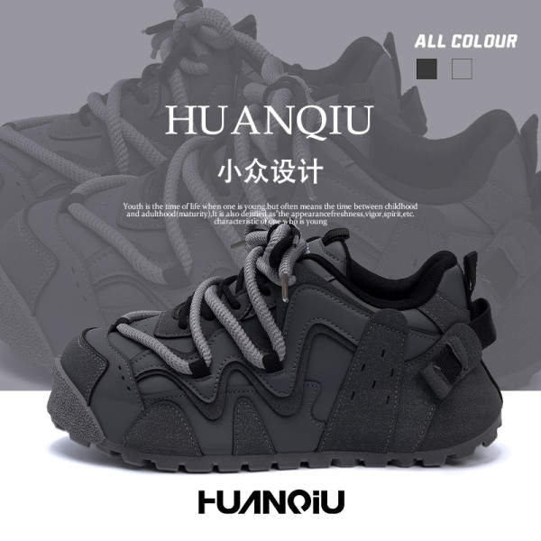 环球 2025新款百搭休闲板鞋男士时尚黑色小众潮流韩版厚底增高潮鞋