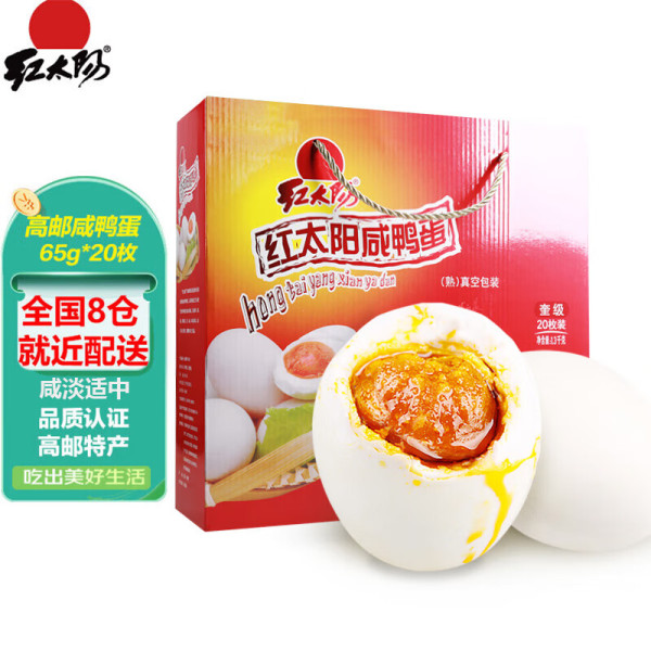 红太阳 江苏高邮咸鸭蛋 65g*20枚 礼盒装