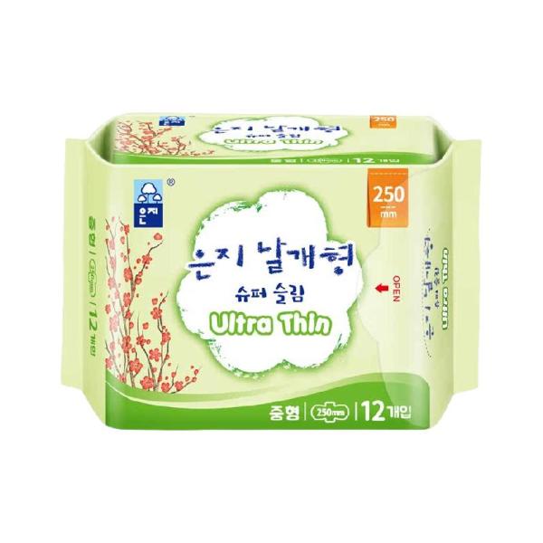 恩芝韩国进口日用卫生巾250mm12片 超薄舒爽透气轻盈护翼型少女姨妈巾