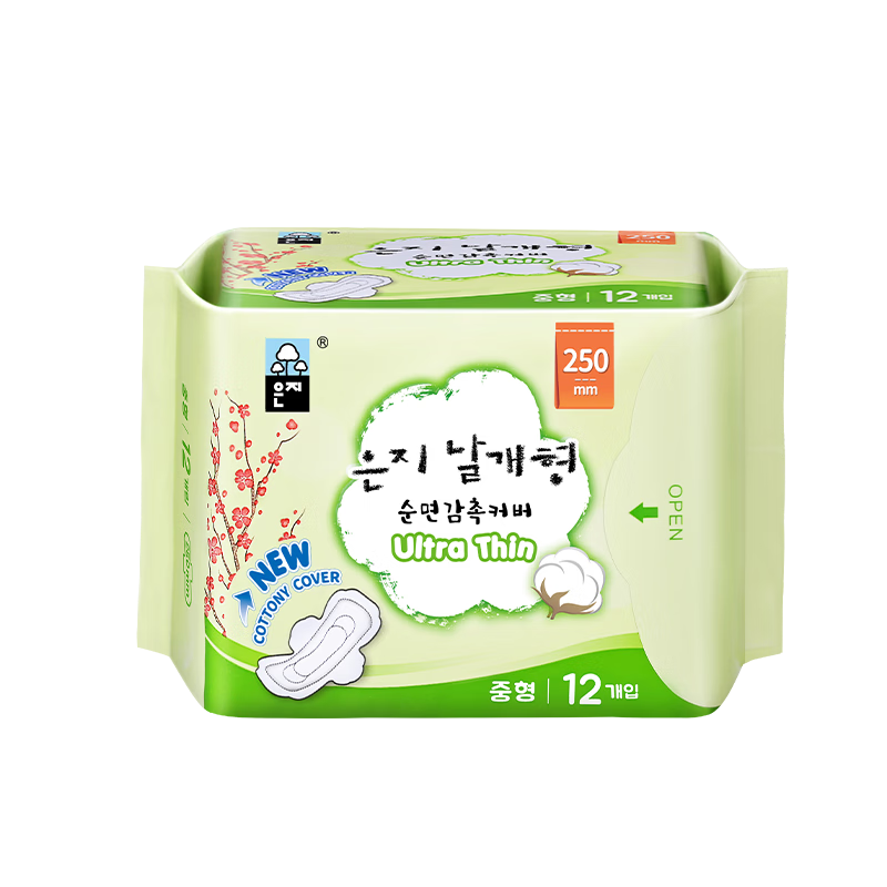 恩芝韩国进口日用卫生巾250mm12片 超薄护翼型层层透气瞬吸清爽姨妈巾
