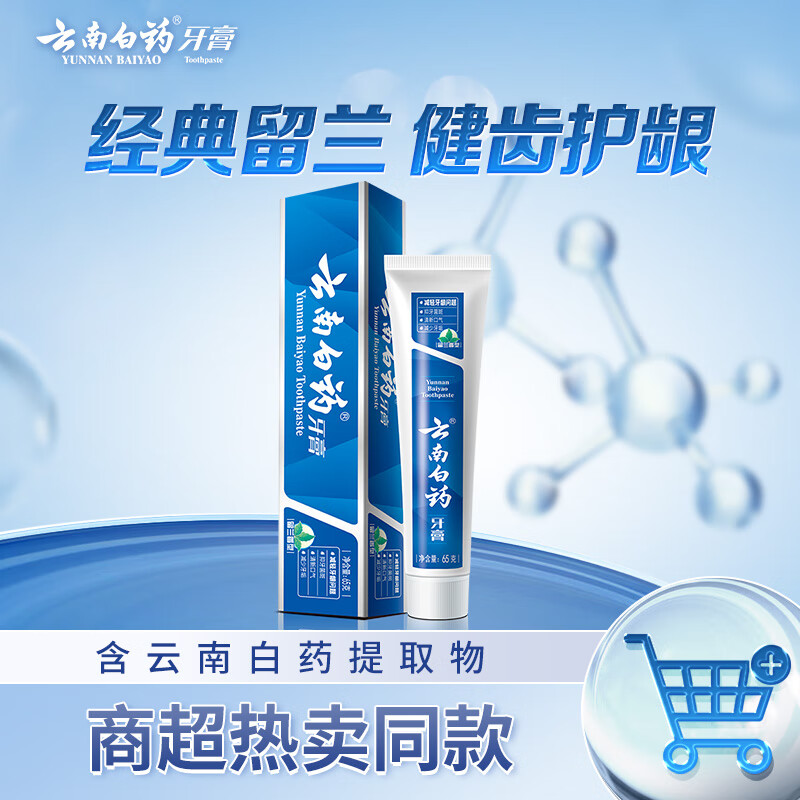云南白药经典系列牙膏 改善牙龈问题清新口气 留兰香型牙膏65g便携旅行装