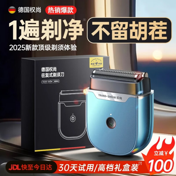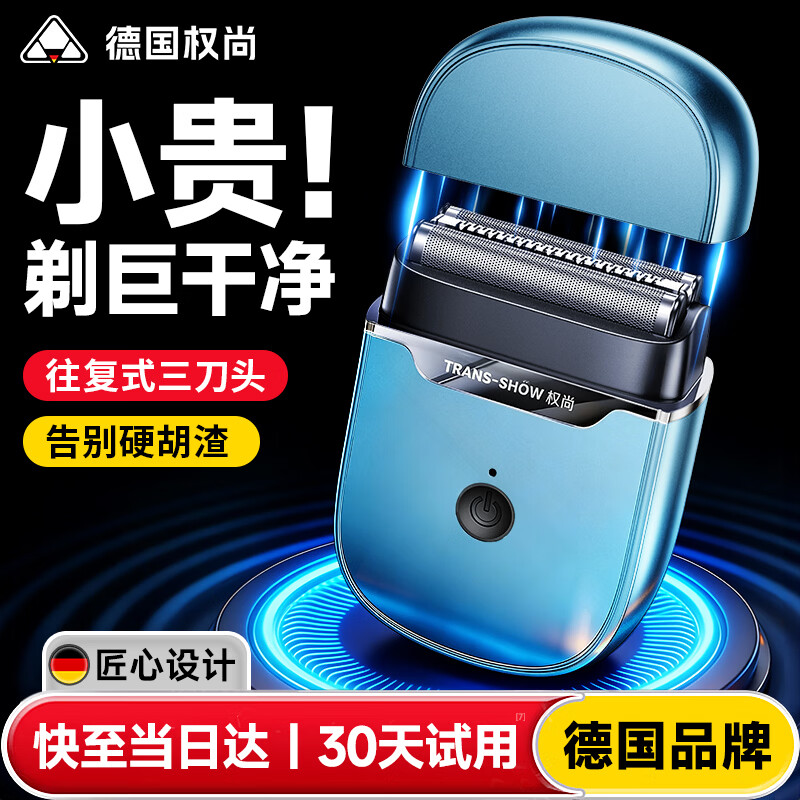 权尚【德国品牌丨不留胡茬】剃须刀男士电动刮胡刀便携往复式快充迷你便携全身水洗送男友老公生日礼物 【锐锋蓝】剃须速度提升300%/180天超长续航. 2025新款/剃更快/剃更净/更便捷/更持久