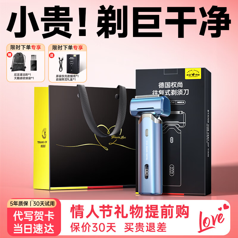 权尚【圣诞节礼物】往复式剃须刀电动刮胡刀2025新款胡须刀原装正品礼盒商务便携生日礼物送男士长辈 【限定爱心礼袋】天青蓝--代写贺卡请咨询客服 顶配五重钛金刀头