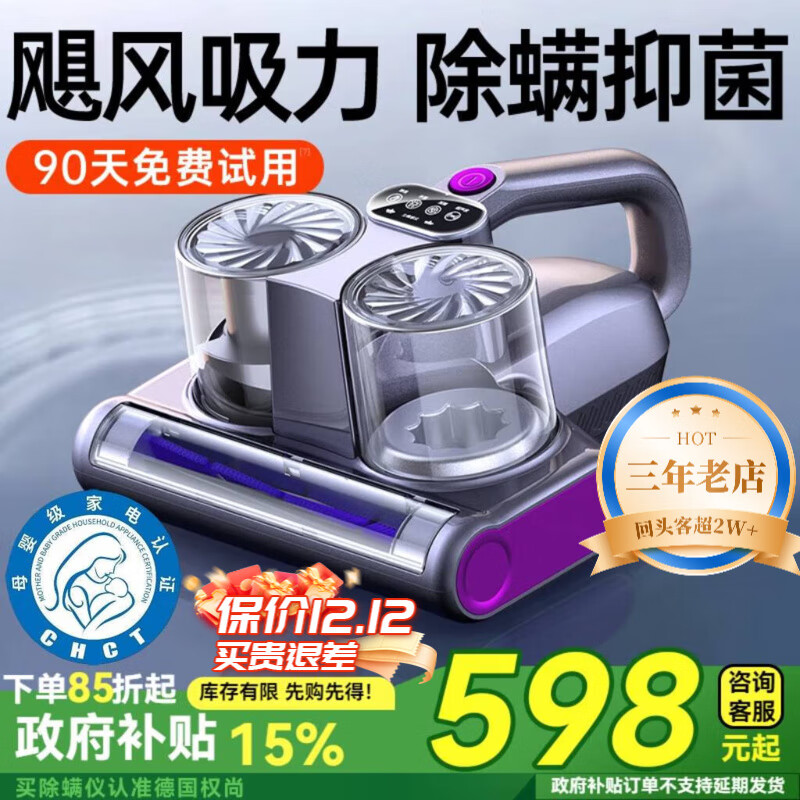 权尚【德国品牌 | 母婴级杀菌除螨】除螨仪手持床上吸尘器紫外线杀菌神器家用高温拍打除螨沙发清洁机 【除螨顶配款】德国品质丨除螨率99.99% 飓风双杯丨65°C高温杀菌丨90天免费试用