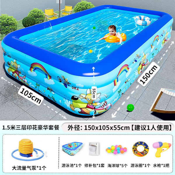 当康 儿童游泳池环保宝宝游泳池桶婴儿游泳池家用儿童充气游泳池浴盆 三层150cm豪华套餐