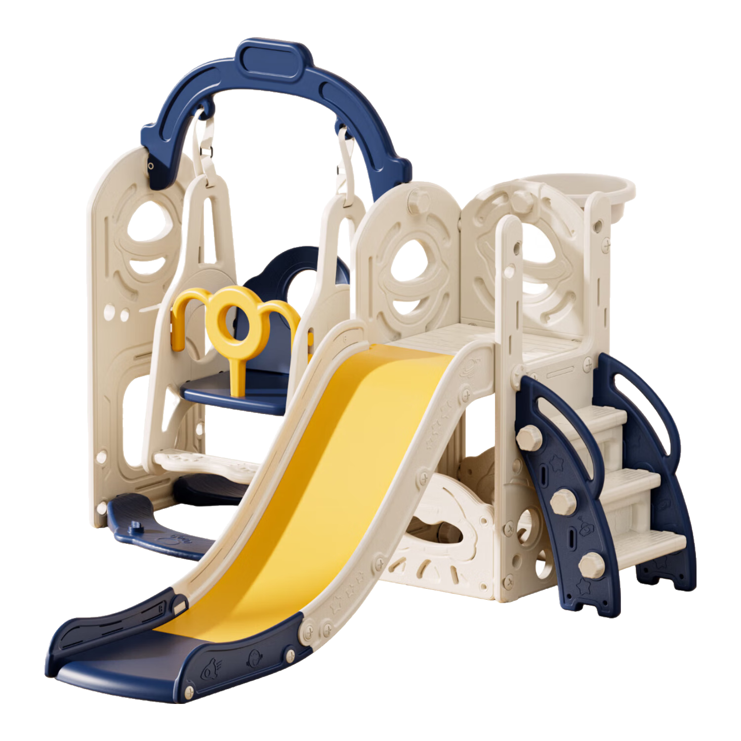 当康 室内滑滑梯儿童篮球架秋千婴儿围栏儿童乐园家用儿童滑梯游乐场 星际蓝单秋千-四大强力吸盘