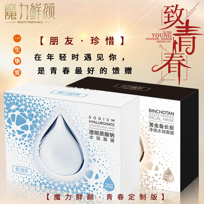魔力鲜颜 真爱粉青春礼盒 (透明质酸白膜/黄金备长炭黑膜) 白膜32片