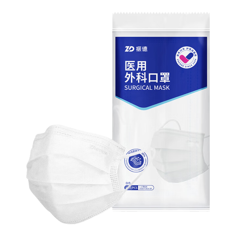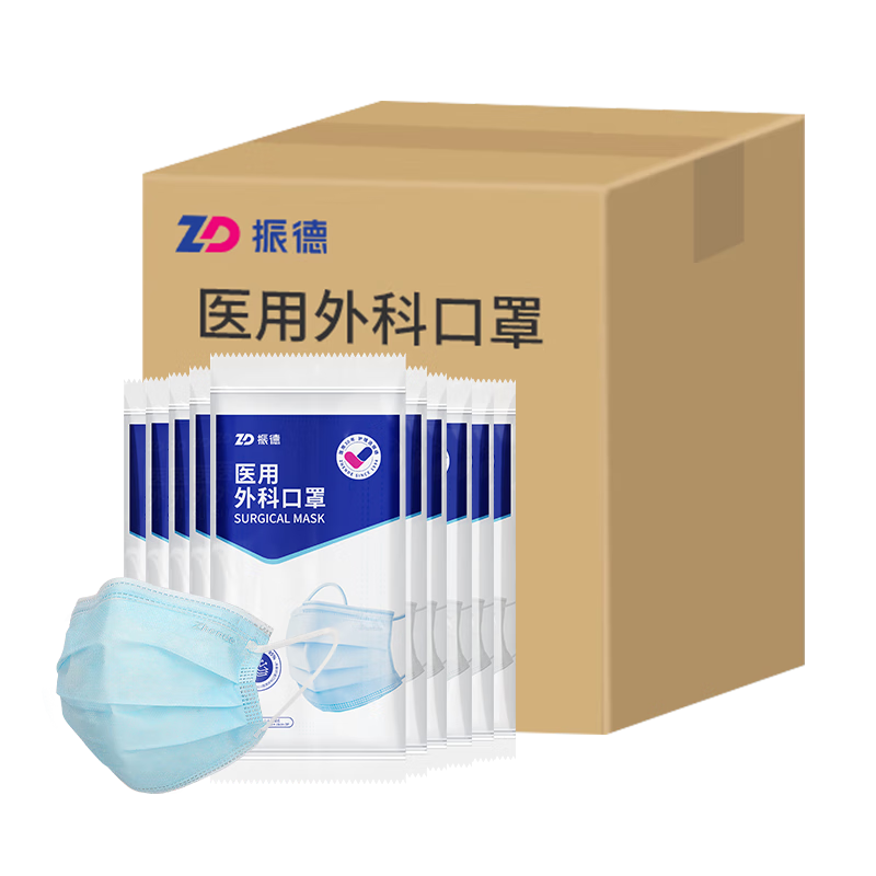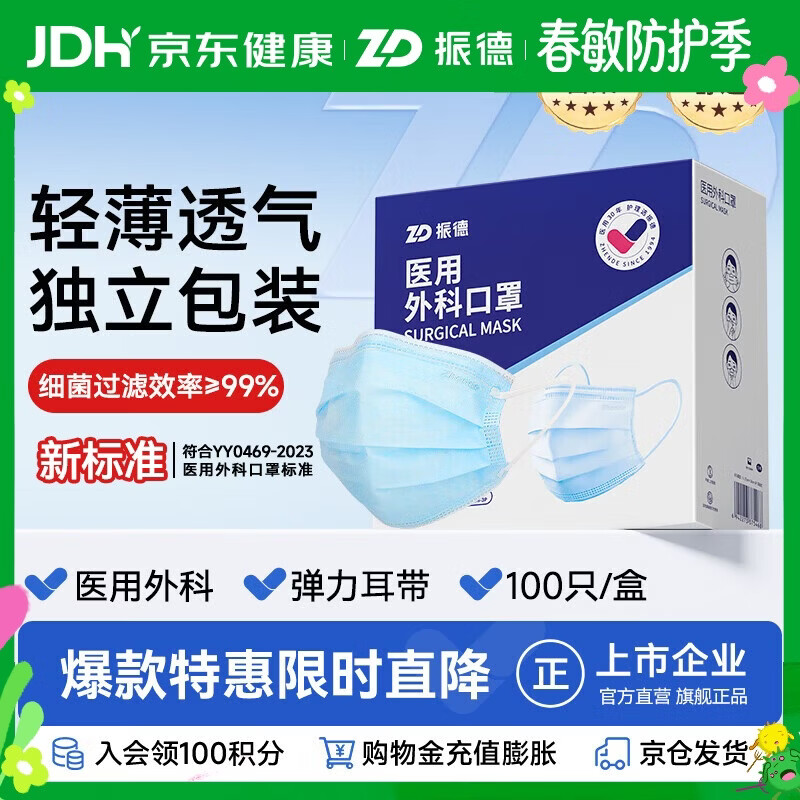 振德一次性医用外科口罩独立包装成人儿童防粉尘花粉防晒口罩 100只