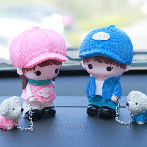 美车乐 卡通创意车饰 勿忘我遛狗情侣 一对装
