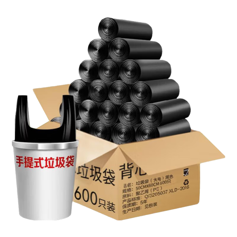利得背心垃圾袋黑色50*60cm600只大号家用手提塑料袋