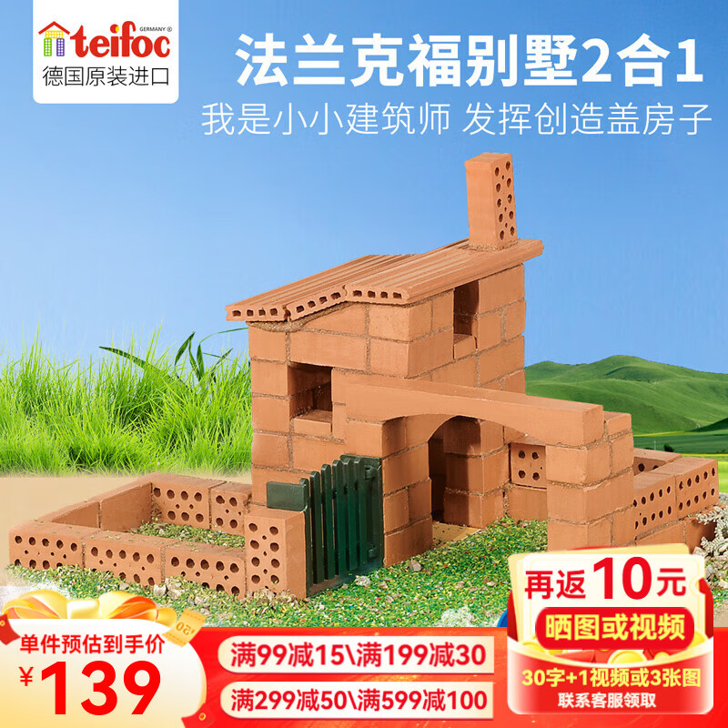 乐泰 teifoc 德国泥瓦匠砌砖盖房子玩具建筑师积木搭建房屋模型玩具 法兰克福别墅2合1
