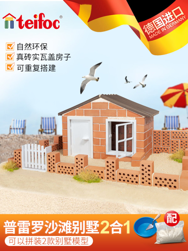 Teifoc德国进口泥瓦匠diy小屋儿童盖房子建筑师玩具男女孩砌砖玩具礼物 普雷罗沙滩别墅2合1 6岁以上【真砖实瓦】儿童生日男女孩生日礼物
