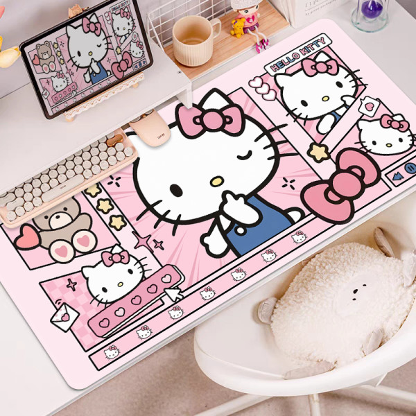 自由光 凯蒂猫鼠标垫超大号电脑桌垫女生可爱笔记本电脑专用键盘垫